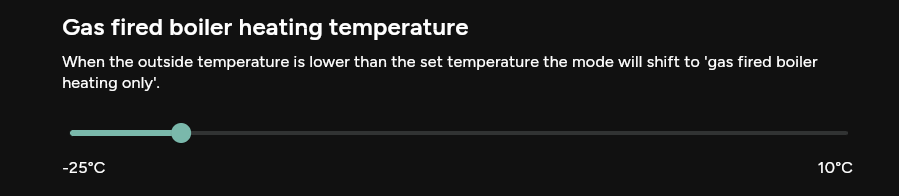 Onder 'Gas boiler/electric heating' pas je het gedrag van jouw back-up systeem aan: